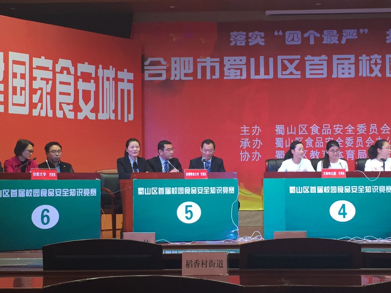 此次比赛以“创建国家食安城市,保障校园食品安全”为主题,分为预赛和决赛两阶段进行。由蜀山区食品安全委员会主办,区食品安全委员会办公室和合肥市食品安全网宣传中心承办,共有蜀山区范围内的大学、中小学、幼儿园18支代表队伍参赛。我校学生公寓小区根据学校安排,组成以小区管理中心餐饮部主任史青松为首的代表队参加比赛。他们态度认真、准备充分,积极参赛、努力抢答,顺利通过初赛,进入决赛。最终在比赛中获得三等奖,为学校赢得了荣誉。